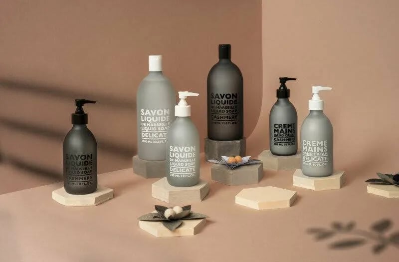 Refill zu 495ml und 300ml Liquid Soap Marseille CASHMERE. Die flüssige Seife von Compagnie de Provence wird traditionell durch die Verseifung in einem Kessel hegestellt – wie schon ihr Vorfahre, der ikonische Seifenwürfel aus Marseille. Die natürlich glyzinierte Cashmere Liquid Marseille Soap schenkt den Händen mit Kopra- und nativem Olivenöl aus biologischem Anbau eine effektive Reinigung. Die ultrasanfte Formel eignet sich nicht nur optimal zum häufigen Händewaschen, sie kann auch hervorragend für die Reinigung des gesamten Körpers verwendet werden. Mit den kostbaren Noten von Orange, Estragon, weißem Moschus und Amber schafft Delicate einen einzigartig warmen Duft, der die Haut umhüllt und die Sinne verführt.