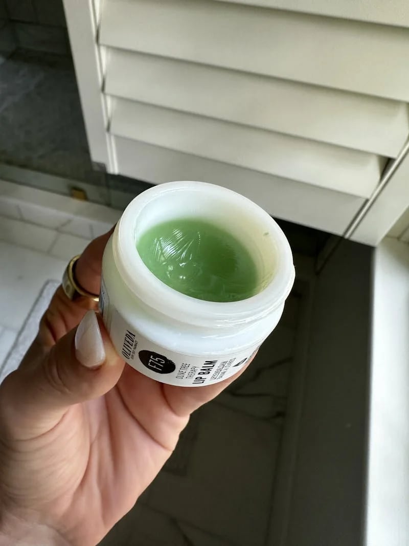 Die grüne F75 Olive Tree Lip Therapy von Oliveda ist ein Lippenbalsam, der auf Wasser als Inhaltsstoff gänzlich verzichtet. Er eignet sich auch als Lippenmaske, die entweder vor dem Schlafengehen oder während des Tages großzügig aufgetragen wird. So lässt der grüne Olive Tree Lip Therapy Lippenbalsam trockene, spröde Lippen buchstäblich über Nacht wieder sanft, glatt und geschmeidig werden. Neben Hydroxytyrosol und den kaltgepressten bioaktiven Arbequina Ölen aus eigenem ökologischen Anbau wirken Lavendel, Vanille und das weitere Polyphenol Oleuropein in Synergie mit Chlorophyll.