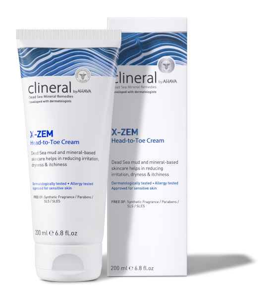 Die AHAVA X-ZEM Head to Toe Cream basiert auf Mineralien und Schlamm aus dem Toten Meer. Die Hautpflege für Gesicht und Körper hilft, Reizungen, Trockenheit und Juckreiz zu reduzieren, die durch eine Dermatitis oder Neurodermitis hervorgerufen werden. Dermatologisch getestet. Alle clineral Produkte sind Schwangerschaftssicher, ohne Mineralöle, Alkoholfrei, GVO-frei, frei von synthetischen Duftstoffen, allergiegetestet, parabenfrei, SlS/SLES-frei, PETA zertifiziert - vegan und ohne Tierversuche.