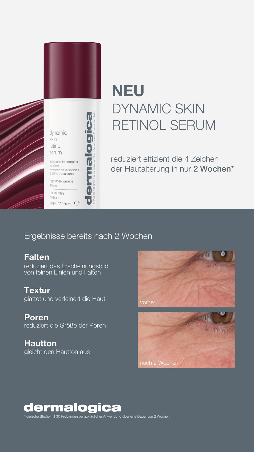 - Reduziert das Erscheinungsbild von feinen Linien und Falten