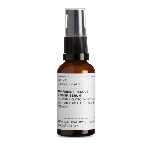 Das Rainforest Rescue Blemish Serum von EVOLVE ist eine wirkungsvolle Mischung aus antioxidatien-reichem Acai und reinigendem Copaiba. Diese Inhaltsstoffe aus dem Amazonas sind das Herz des Serums, das besonders bei unreiner Haut und verstopften Poren angewendet werden kann, auch solche, die zusätzlich empfindlich ist. Es reduziert sanft und wirkungsvoll Unreinheiten, klärt die Poren und reguliert die Überproduktion von Hautfett. Morgens und abends auf die gereinigte Haut lokal oder nur auf der T-Zone auftragen.